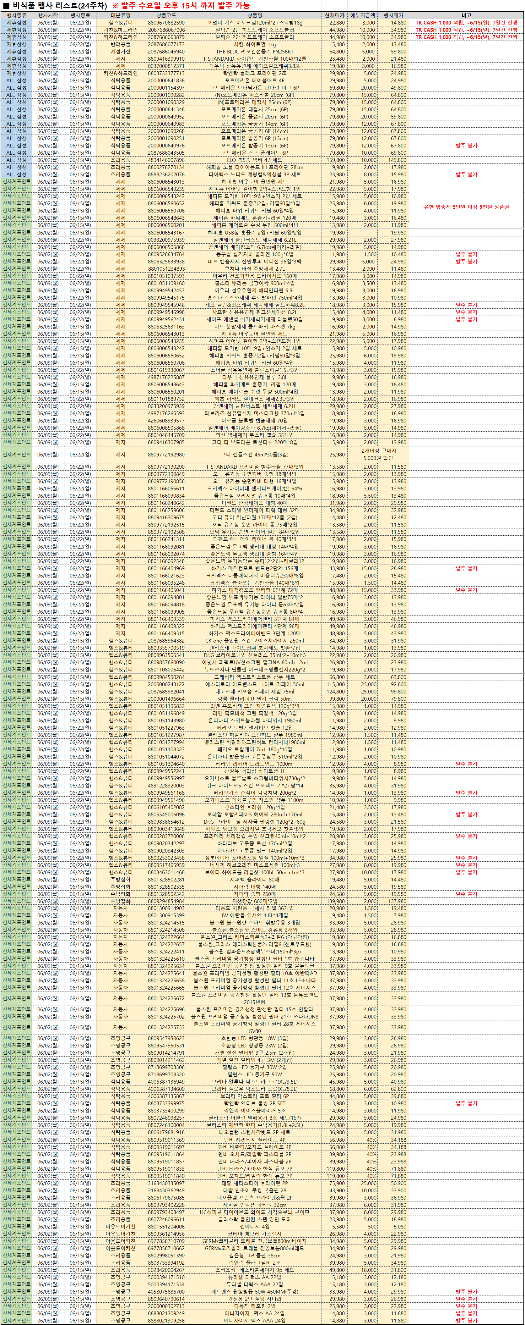| 제품명 | 정상가 | 할인가 | 행사기간 |