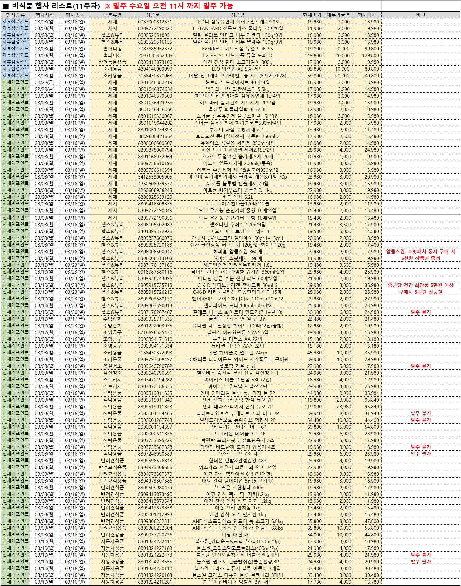 - **사조참치 살코기 (150g × 8캔)** → 3,000원 할인